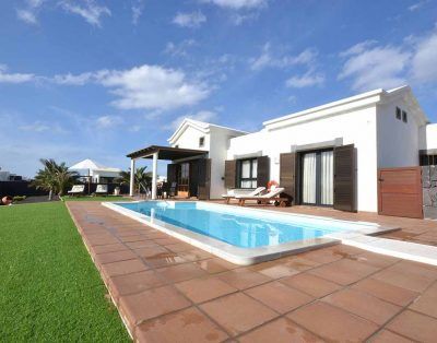 Estupenda villa en urbanización de gran calidad, al pié del volcán de Playa Blanca y con vistas excepcionales al mar, la isla de Lobos y de Fuerteventura. Consta de 2 habitaciones dobles, 1 habitación de matrimonio y 2 cuartos de baño completos. Su piscina privada climatizada, sus zonas chill out con muebles de teca, y sus vistas al mar desde la suit principal, hacen de esta villa un lugar ideal para relajarse y pasar unos días de vacaciones.